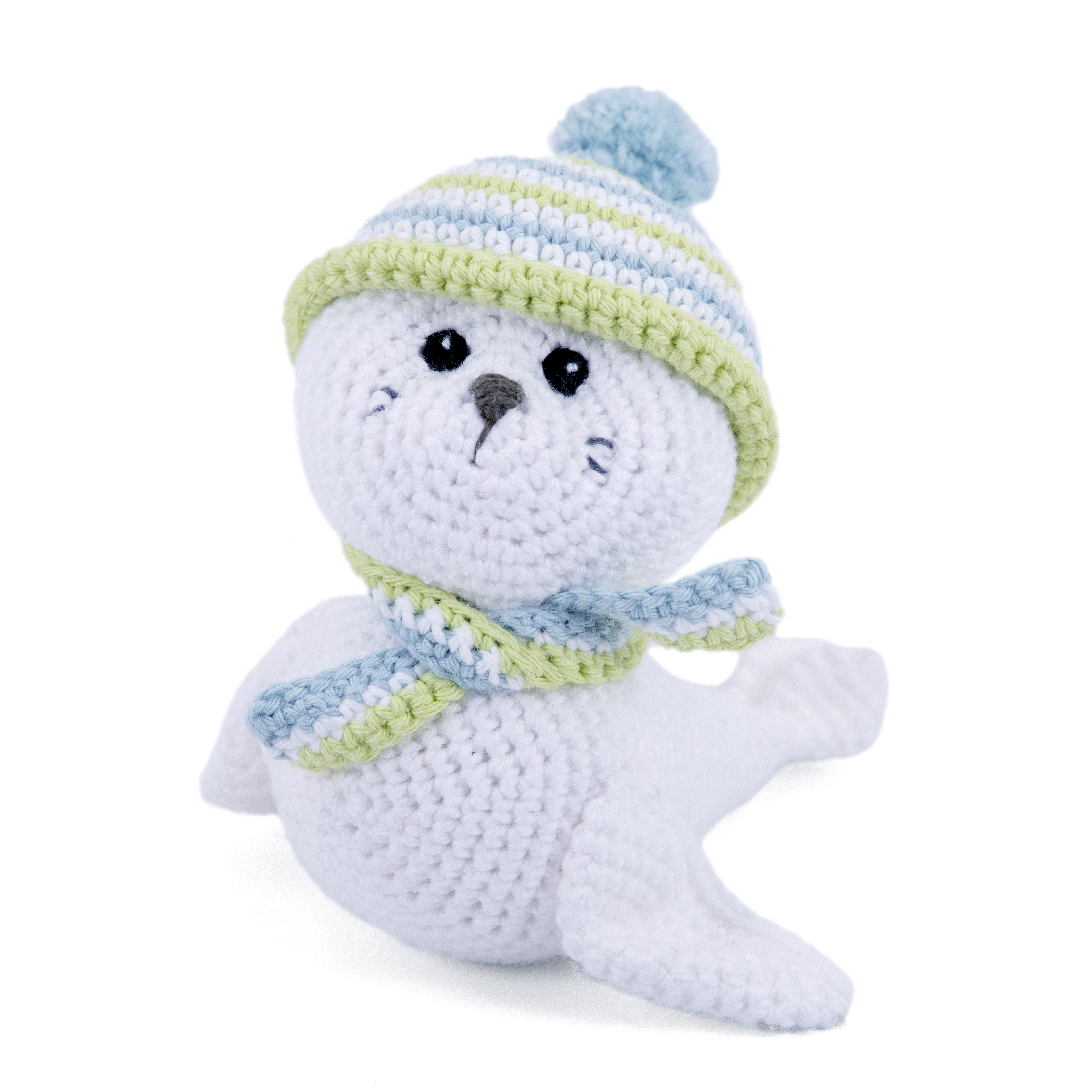 Mit seinen Knopfaugen, der Mütze und dem Schal ist Robbe Robbie einfach zum Anbeißen süß. Er ist so liebevoll gestaltet, dass man ihn einfach gernhaben muss. Ob als tierischer Glücksbringer, süße Deko fürs Kinderzimmer oder persönliches Häkelprojekt für zwischendurch – Robbie bringt nordisches Flair in dein Zuhause.