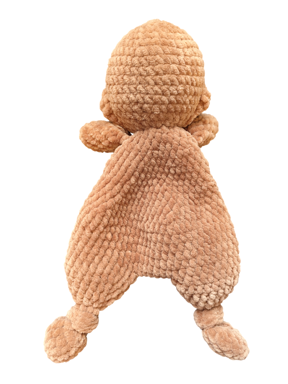 Dieses selbstgemachte gehäkelte Otter-Schmusetuch ist ein besonders liebevolles und kuscheliges Accessoire für Babys. Mit einer Gesamtlänge von ca. 35 cm und einer Breite von ca. 18 cm an der breitesten Stelle, bietet es die perfekte Größe für kleine Hände, die nach einem weichen, sicheren und beruhigenden Spielgefährten suchen.