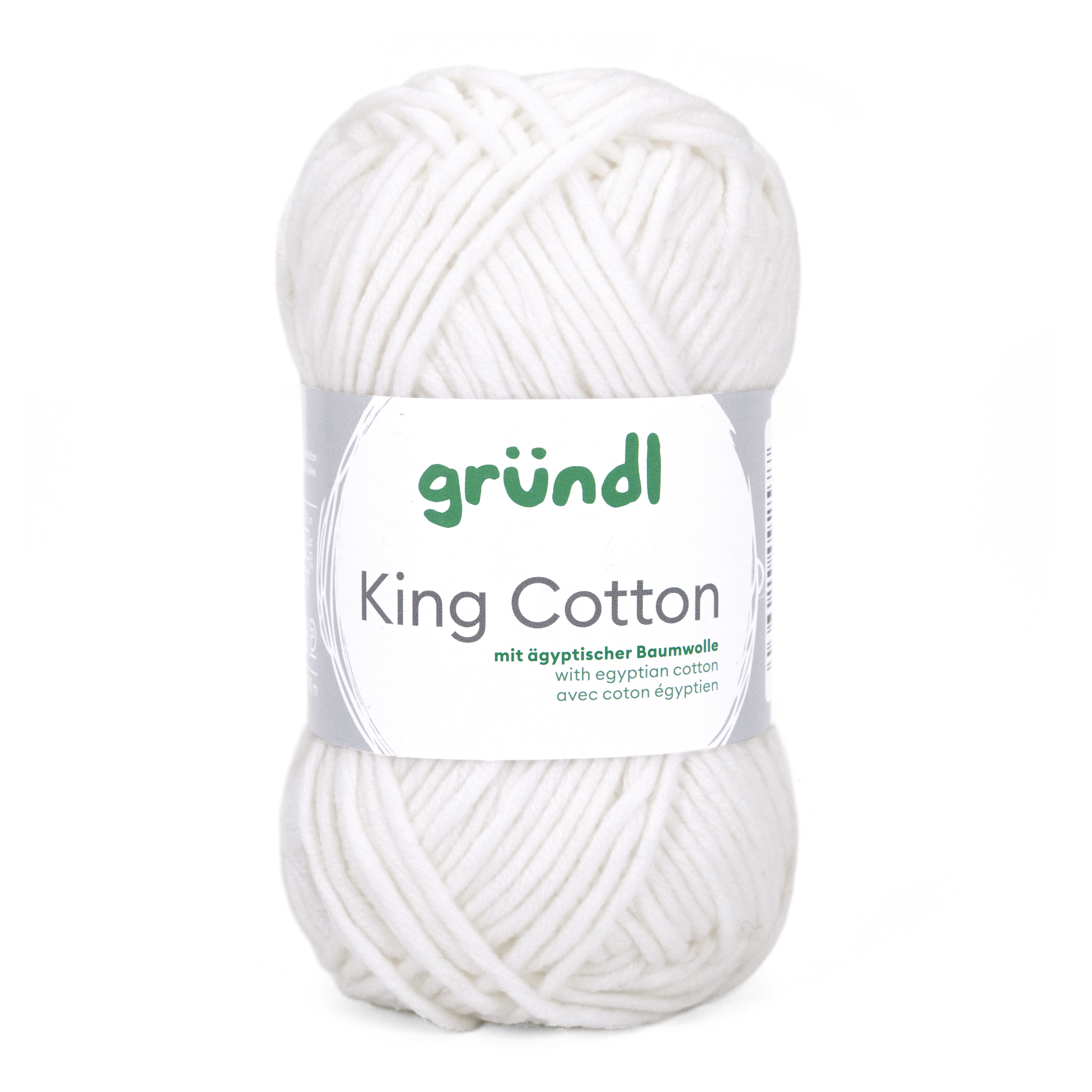 King Cotton ist im wahrsten Sinne des Wortes ein königliches Baumwollgarn, das zu 45% aus ägyptischer Baumwolle besteht. Die Pharaonen werden dir zu Füßen liegen! Freue dich auf ein majestätisches Volumen und einen opulent weichen Griff. Dank doppelter Verzwirnung ist das Garn äußerst strapazierfähig und pflegeleicht. Und der angenehme Tragekomfort durch den hohen Baumwollanteil ist wirklich was für wahre König*innen. Also: Zepter – auch bekannt als Strick- oder Häkelnadel – in die Hand und schon bald ist es vollbracht, dein königliches Kreativprojekt!