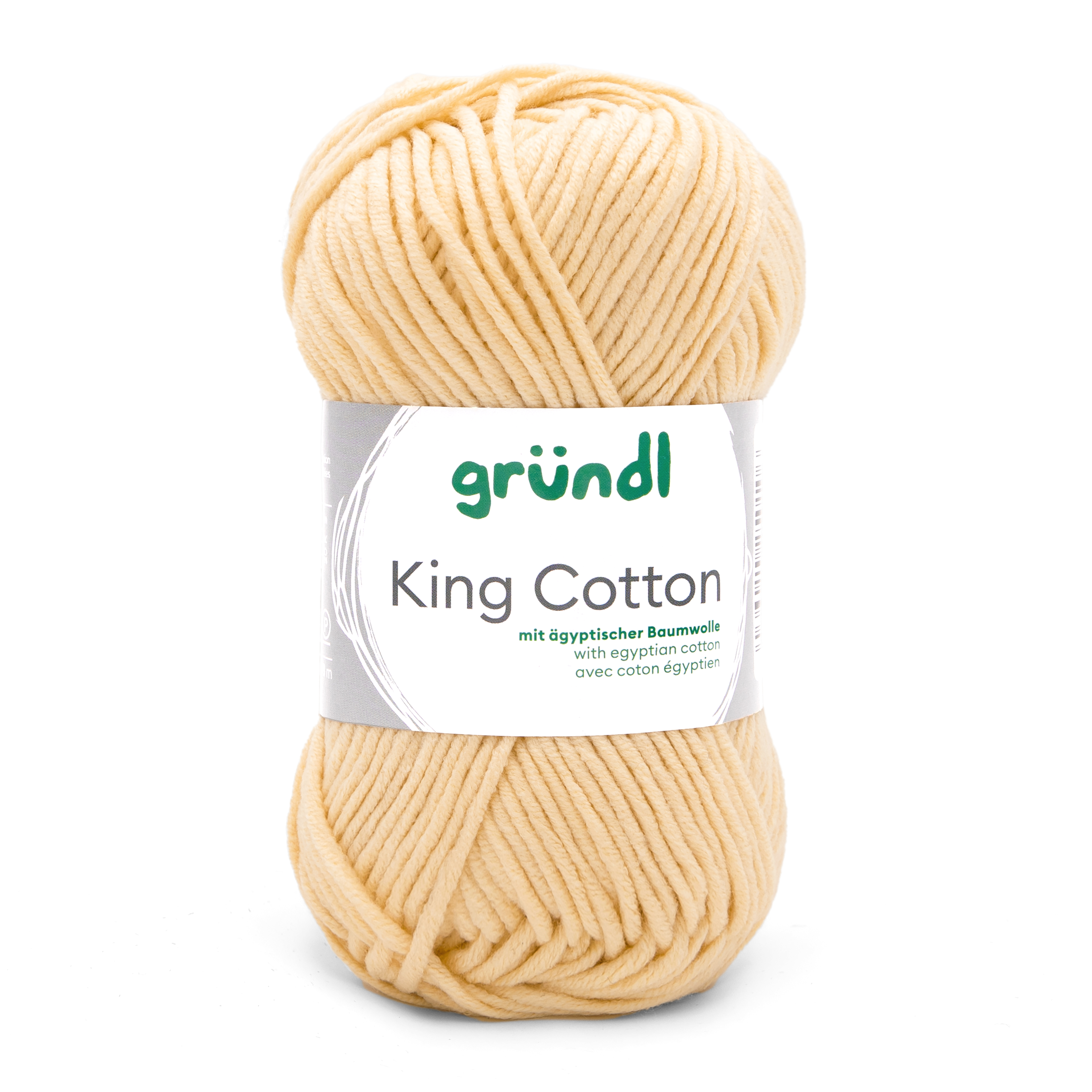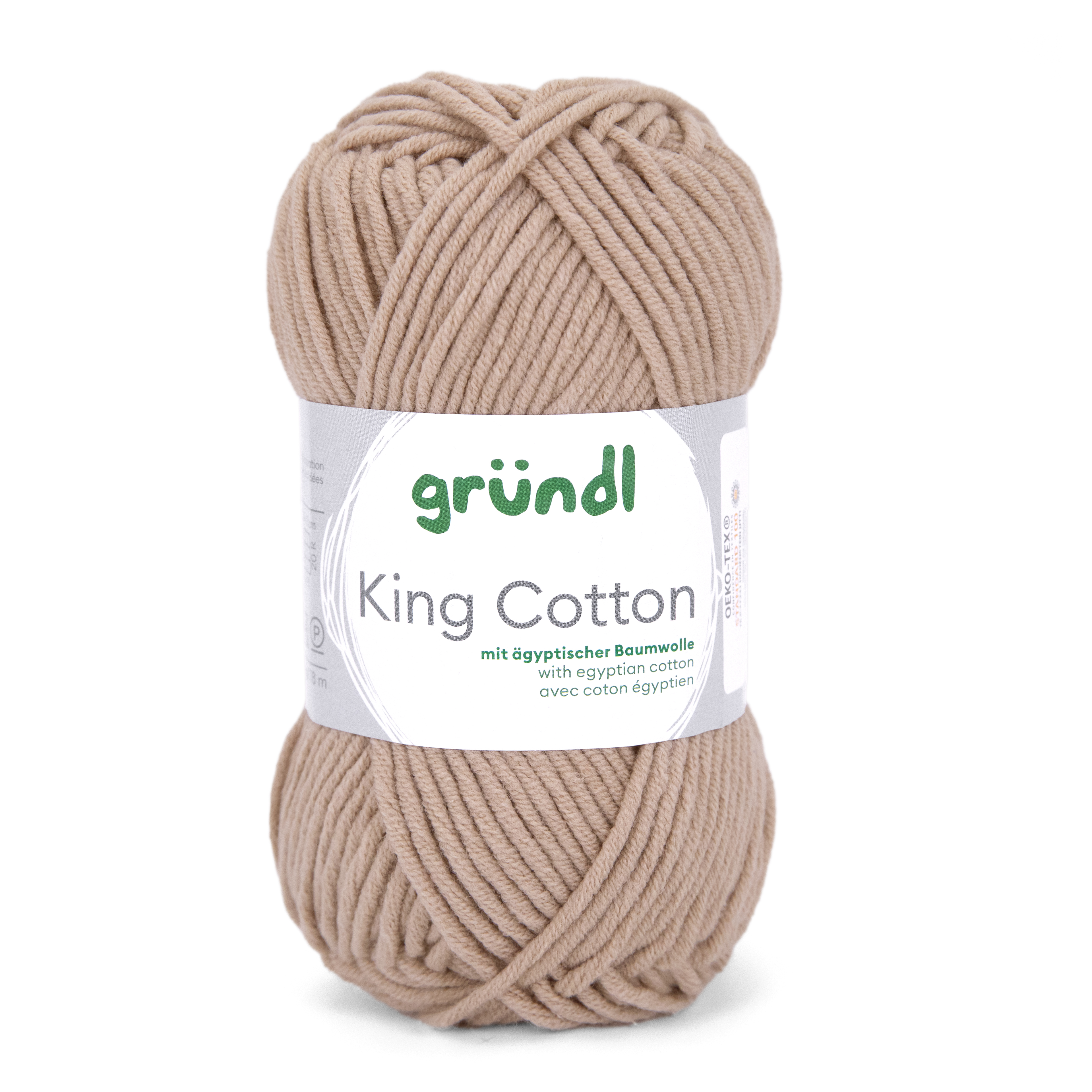 King Cotton ist im wahrsten Sinne des Wortes ein königliches Baumwollgarn, das zu 45% aus ägyptischer Baumwolle besteht. Die Pharaonen werden dir zu Füßen liegen! Freue dich auf ein majestätisches Volumen und einen opulent weichen Griff. Dank doppelter Verzwirnung ist das Garn äußerst strapazierfähig und pflegeleicht. Und der angenehme Tragekomfort durch den hohen Baumwollanteil ist wirklich was für wahre König*innen. Also: Zepter – auch bekannt als Strick- oder Häkelnadel – in die Hand und schon bald ist es vollbracht, dein königliches Kreativprojekt!